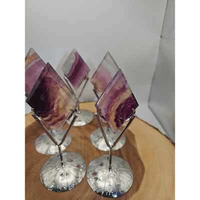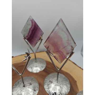 1 Each Natural Rainbow Fluorite Diamond W/ Zodiac stand
