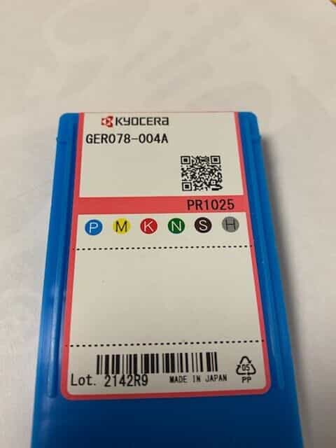 KYOCERA 8822741 DOUBLE EDGED GROOVING INSERT, ANSI CODE: GER078004A PR1025, GE INSERT STYLE, 078 INSERT SIZE, RIGHT HAND, X 0.078 IN W CUTTING, MANUFACTURER’S GRADE: PR1025, PVD-TICN COATED, MATERIAL GRADE: M, P