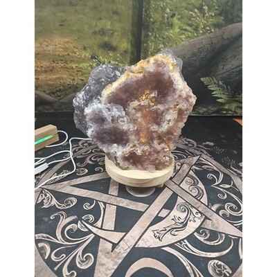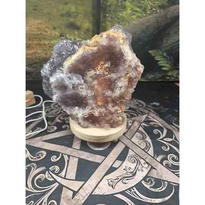 This product is a stunning natural fluorite quartz crystal cluster specimen from Morocco. The piece weighs 11.9LB and comes with stand for easy viewing of its intricate details and colors. The cluster is shaped naturally and is made of high-quality crystal quartz, making it a beautiful and unique addition to any crystal or mineral specimen collection. The dimensions of the specimen are provided in the description for reference.