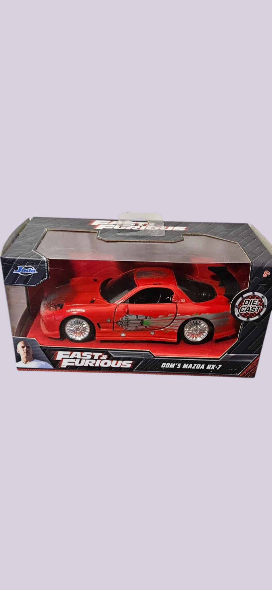 Fast & Furious Die Cast Metal Car by JADA Toys Dom’s Mazda RX-7. New in Box. Collectible car. 1:32 Scale. Red in Color. ITEM #3777