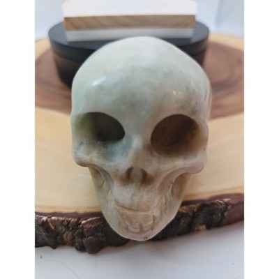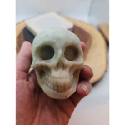 The product is a unique collection of 1lb natural jasper calcite skulls crystal carvings, featuring a variety of mixed stones such as jasper, jade, agate, and tourmaline. Each skull is carefully crafted and intricately carved, making them ideal for collection or as decorative pieces. These natural stones are sourced from Madagascar, adding to their rarity and authenticity. Ideal for crystal enthusiasts or those seeking healing properties from the stones, these generator-shaped crystals are sure to admire.