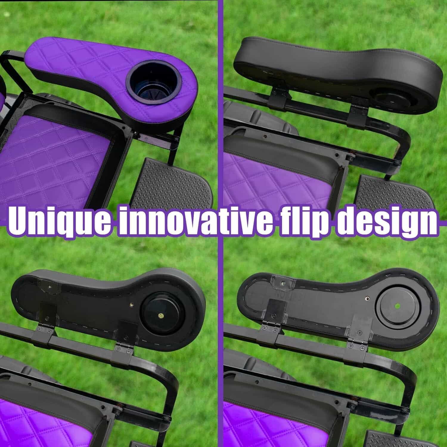 2 Pack Golf Cart Rear Seat Armrest with CupHolders Flip Black & Purple