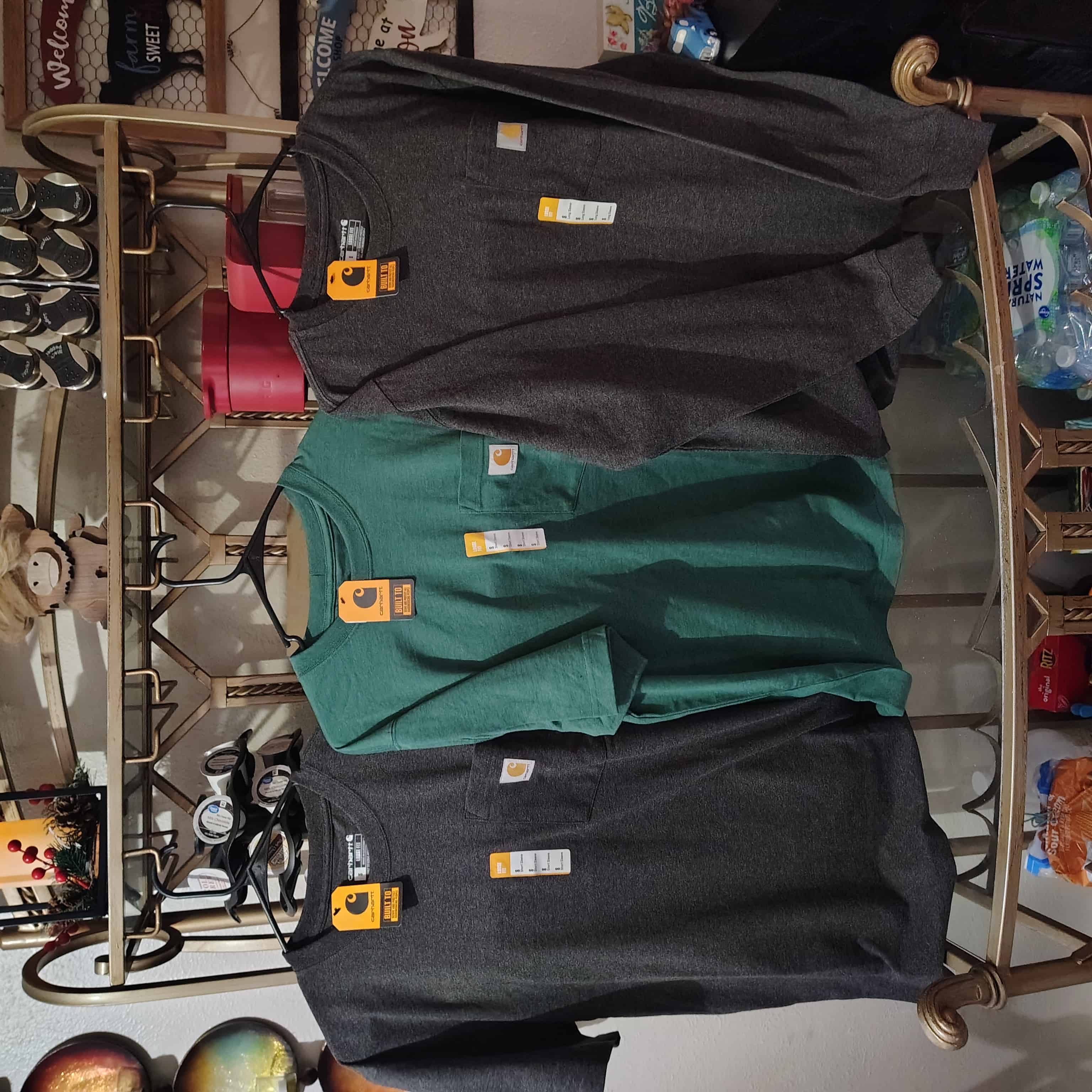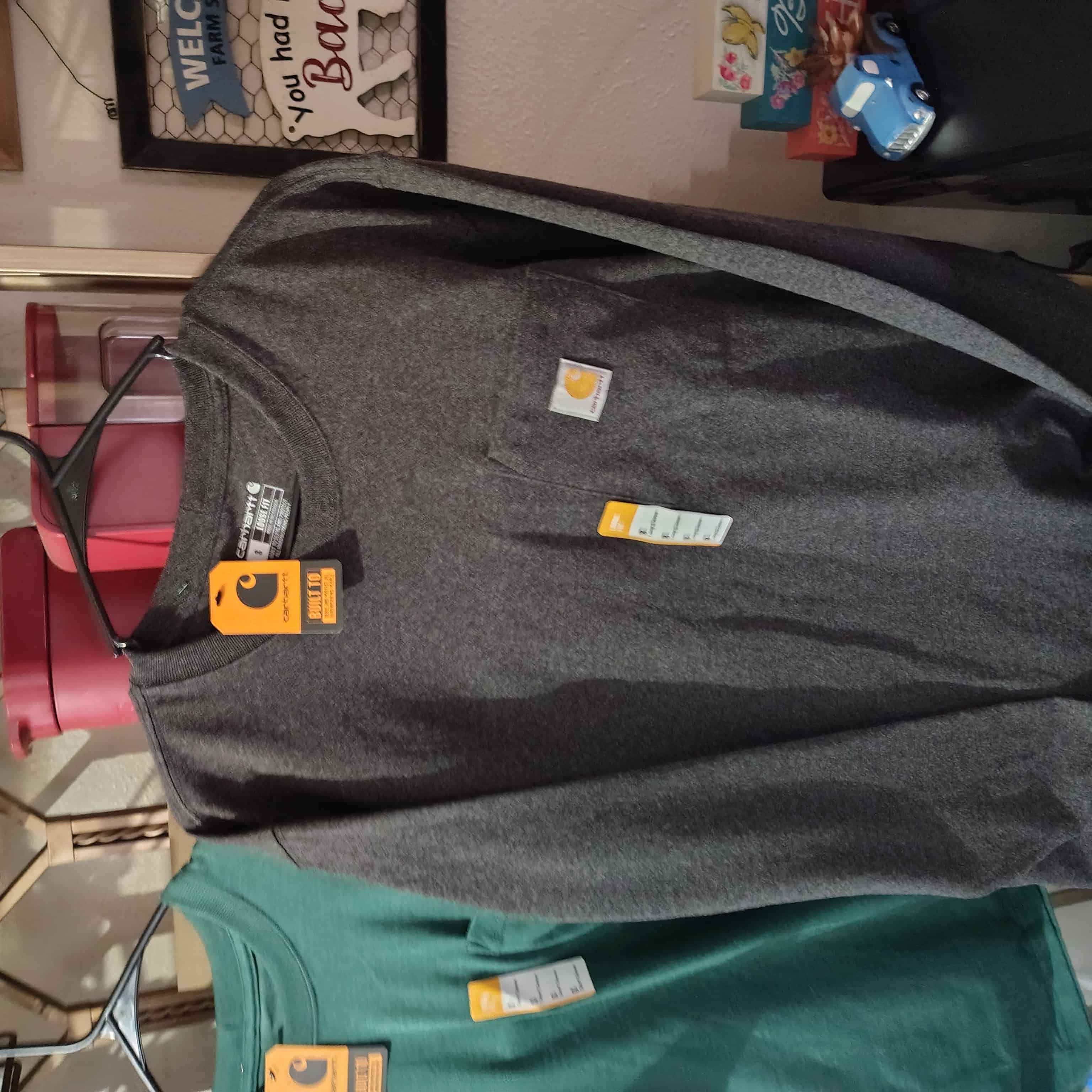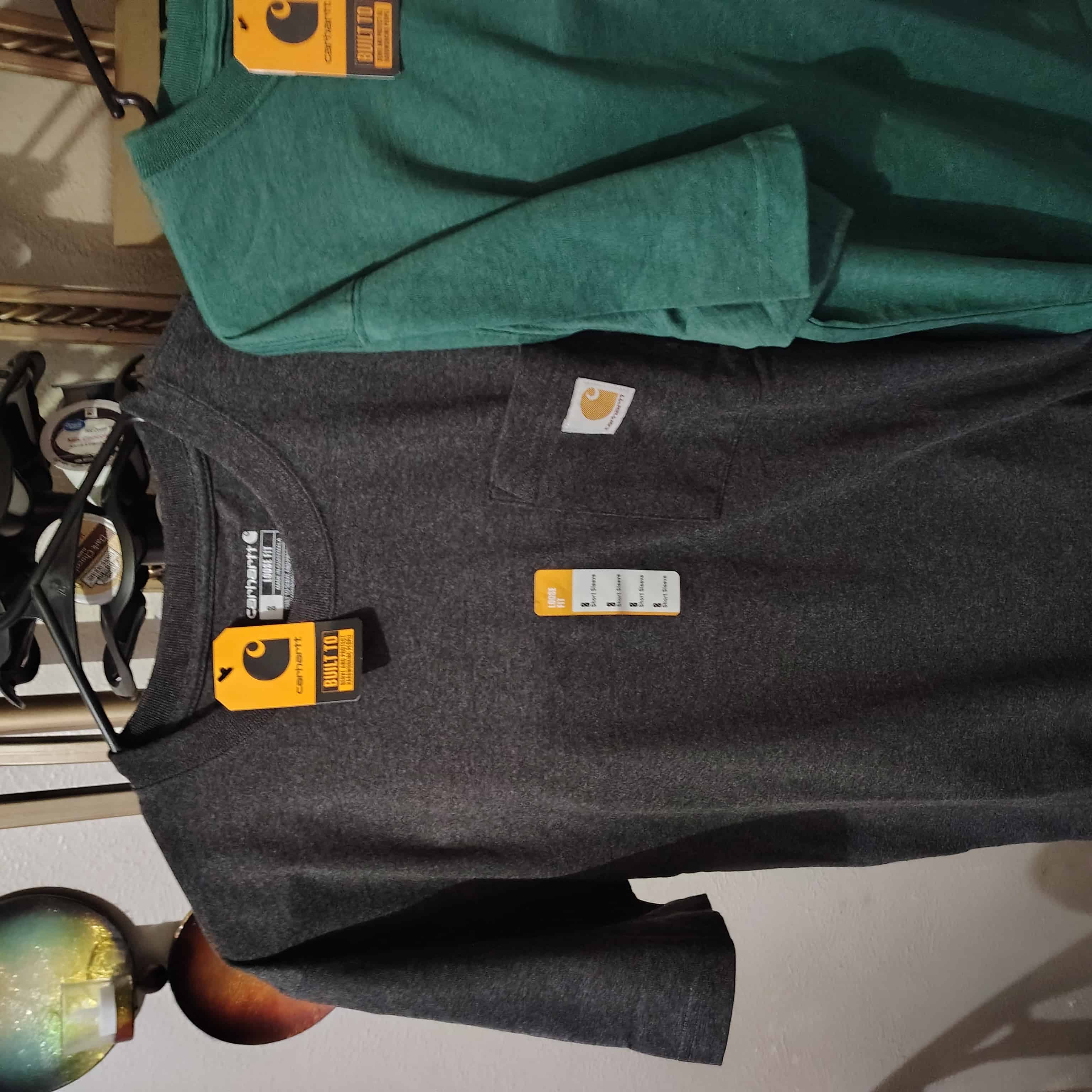 We have five new addition men’s small loose fit tall Carhartt T-Shirts, and one small loose fit long sleeve Carhartt t-shirt all are new with tags and you do get everything pictured in this order