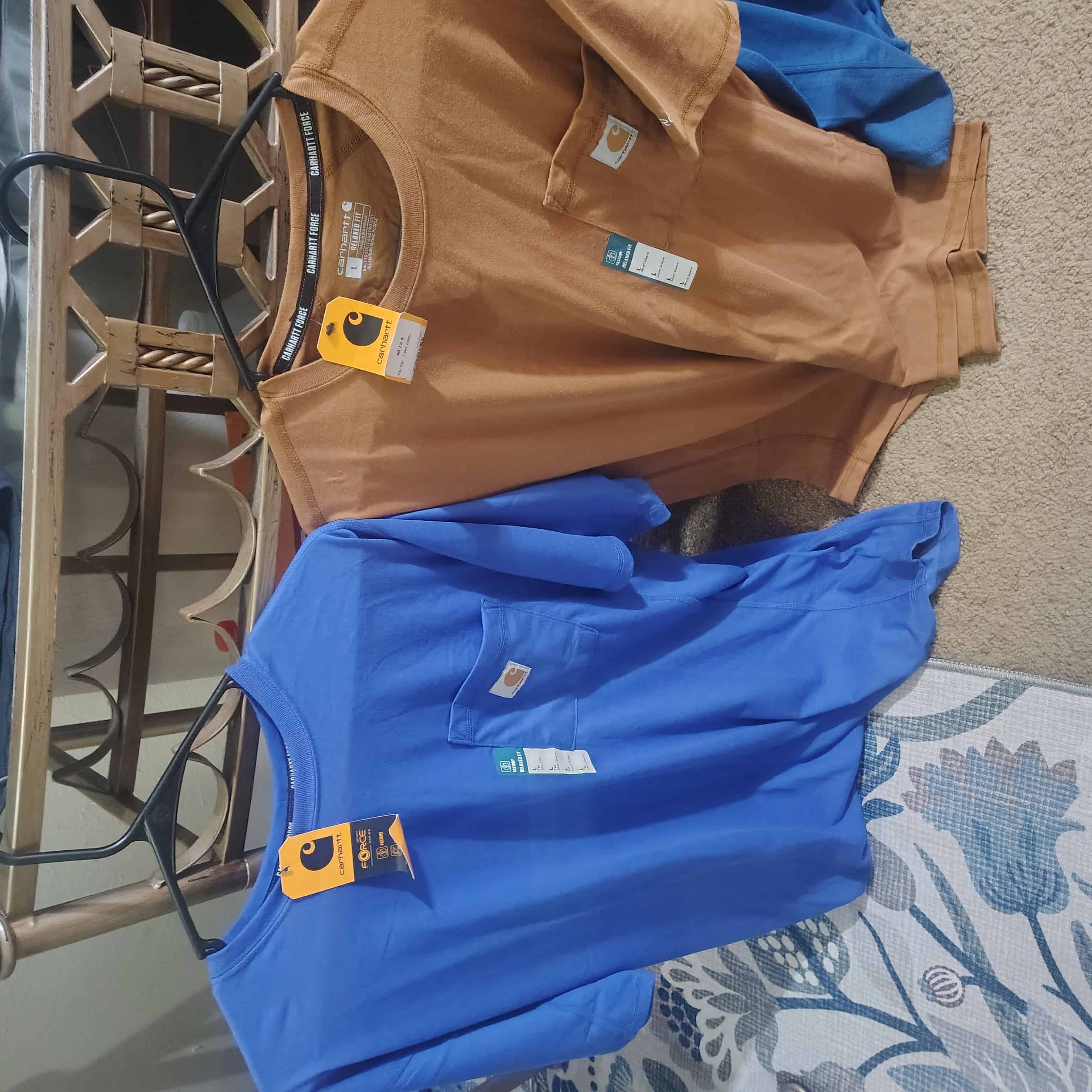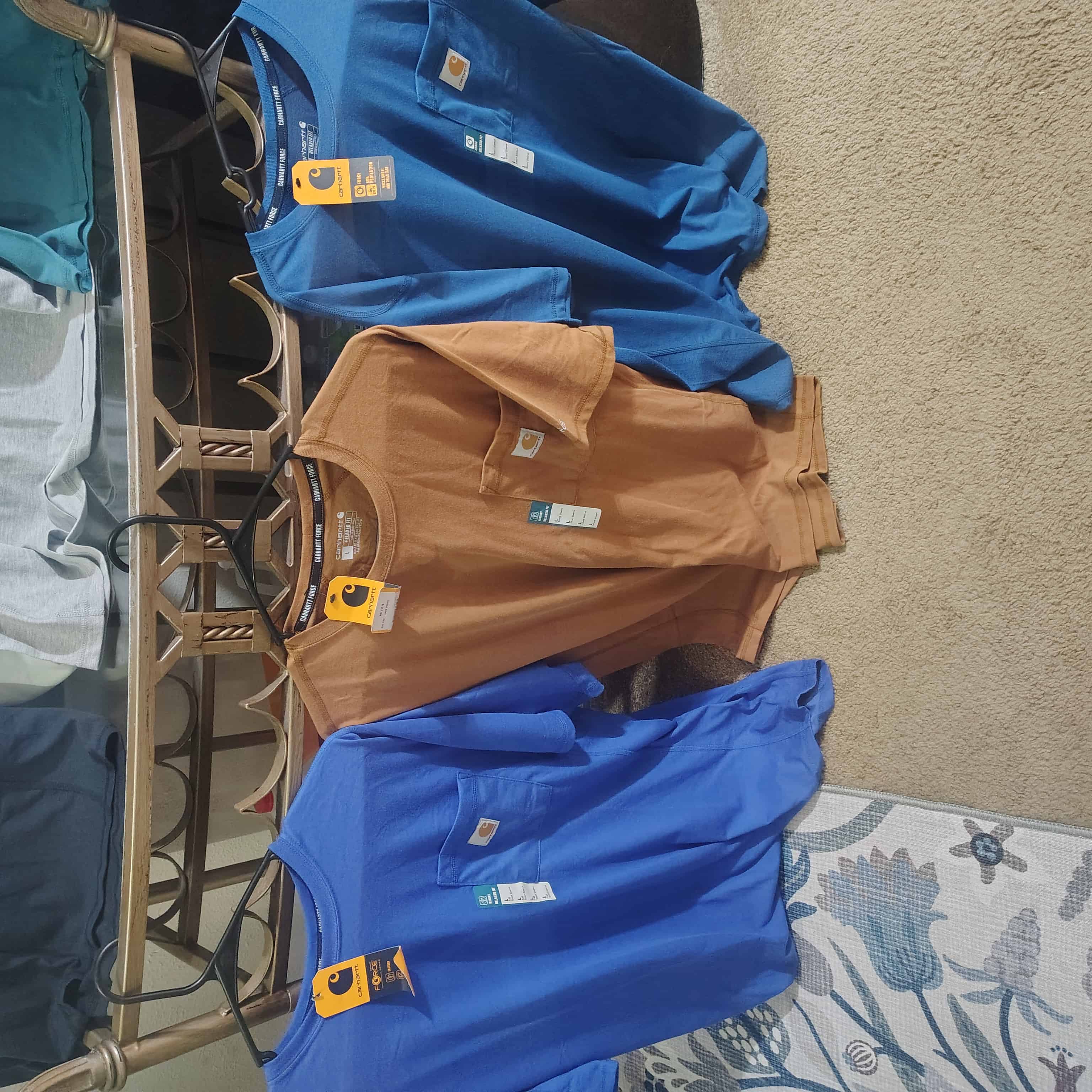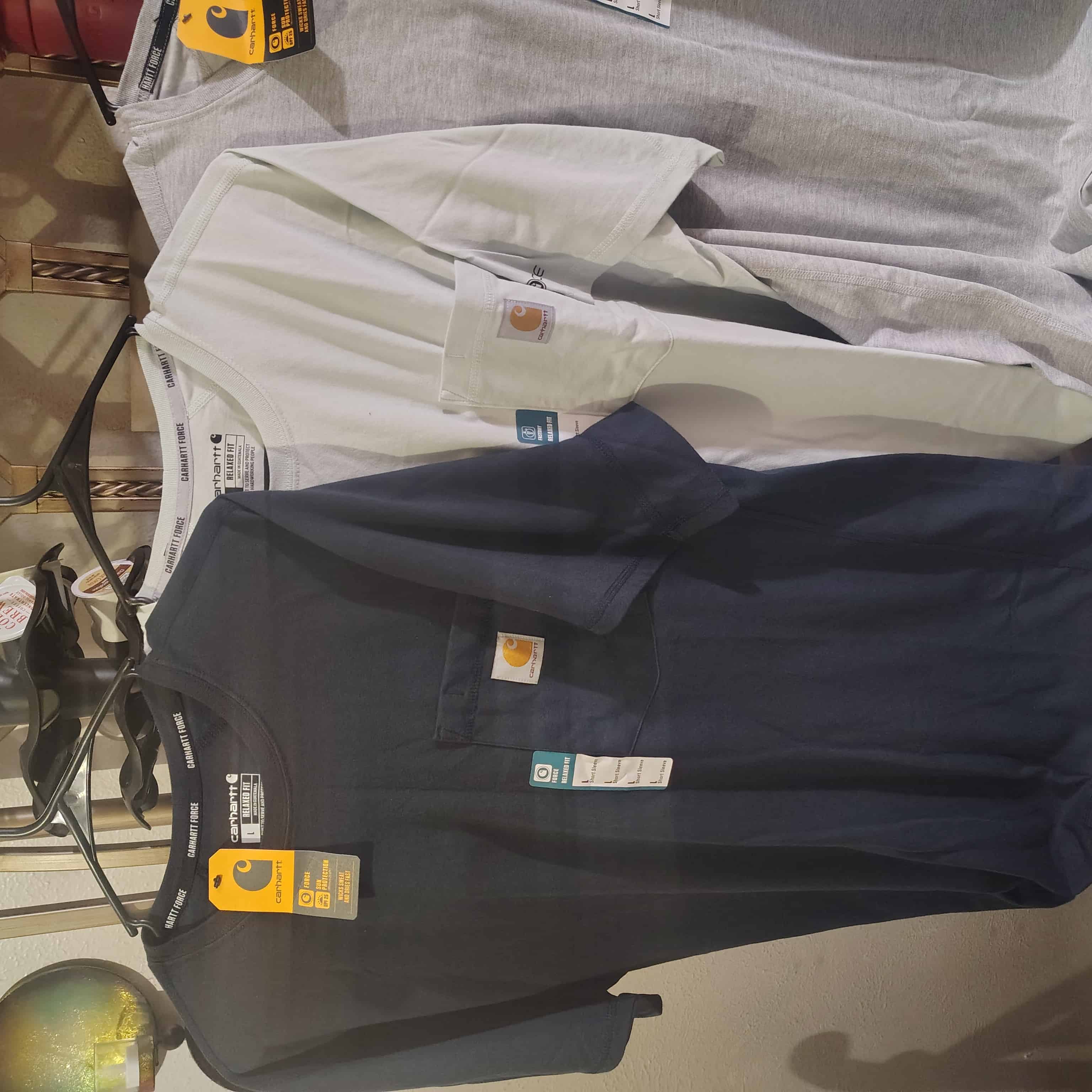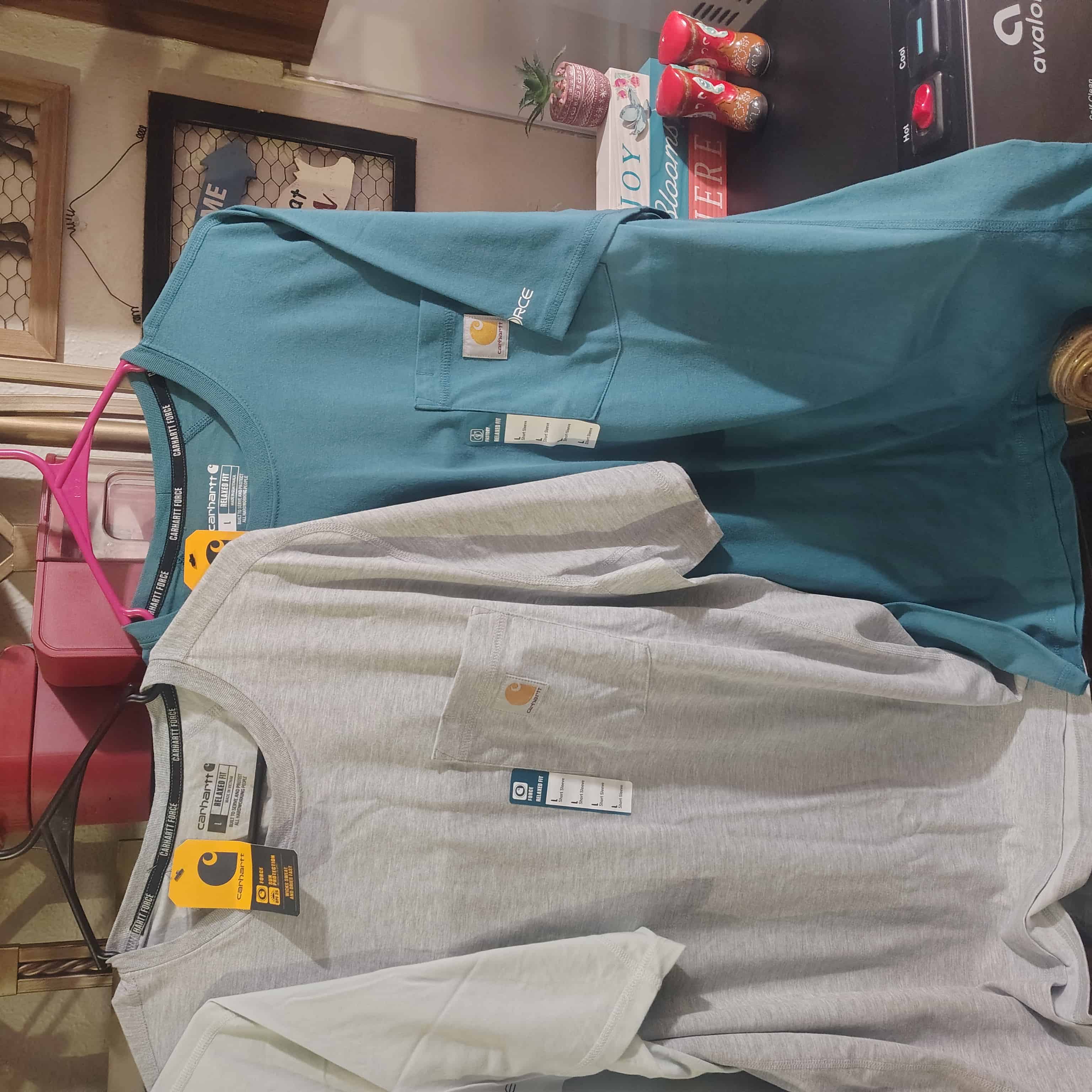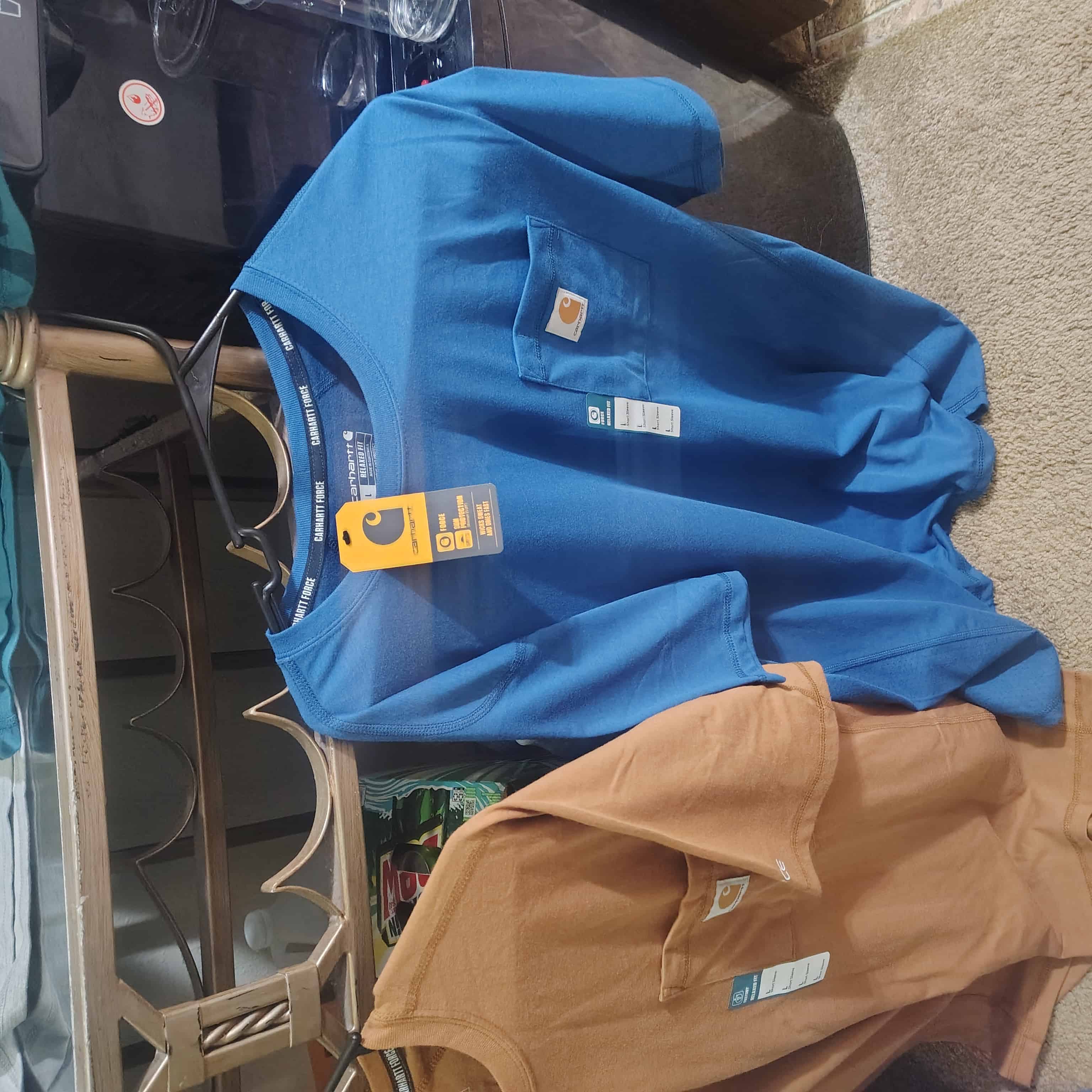 I have seven new men’s size large Carhartt New Edition Force defender t-shirts. Loose fit. These are all very nice and they run almost $40 each in store. You get all seven for my price