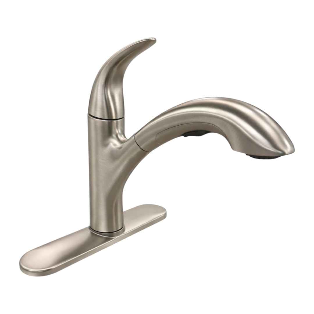 - Pull‑out hose provides flexible water delivery and retracts smoothly after use