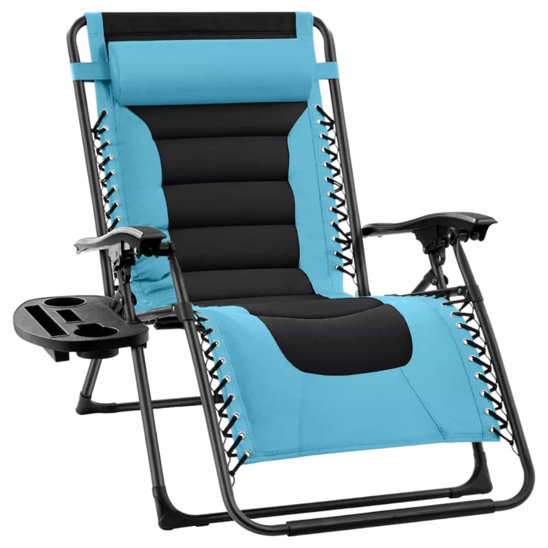 Experience the ultimate in outdoor comfort with this Oversized Zero Gravity Chair. Built with a durable steel frame and sturdy armrests, it offers reliable support while the extra-wide, padded seat provides plenty of room to stretch out and relax. The weather-resistant polyester fabric is designed for long-lasting comfort, while the lightweight, folding frame makes it easy to take along to the park, beach, or campsite. A detachable side tray keeps essentials within reach, complete with two cup holders, a phone mount, and a tablet rest. With its adjustable lock system, the chair smoothly reclines into a zero-gravity position—up to 160 degrees—for customizable lounging.
