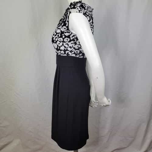 Simple but classy basic black & white dress with pretty ruffled neckline! Great silky feel but made of easy to care for polyester. Perfect for Sunday at church or any day at the office! Pair it with a nice pair of black flats for a simple look or dress it up with a fancy pair of black heels.