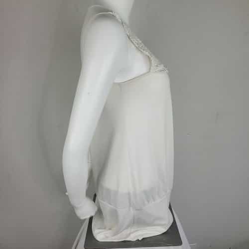 A’gaci Sleeveless Ivory Colored Crochet Bust Tunic