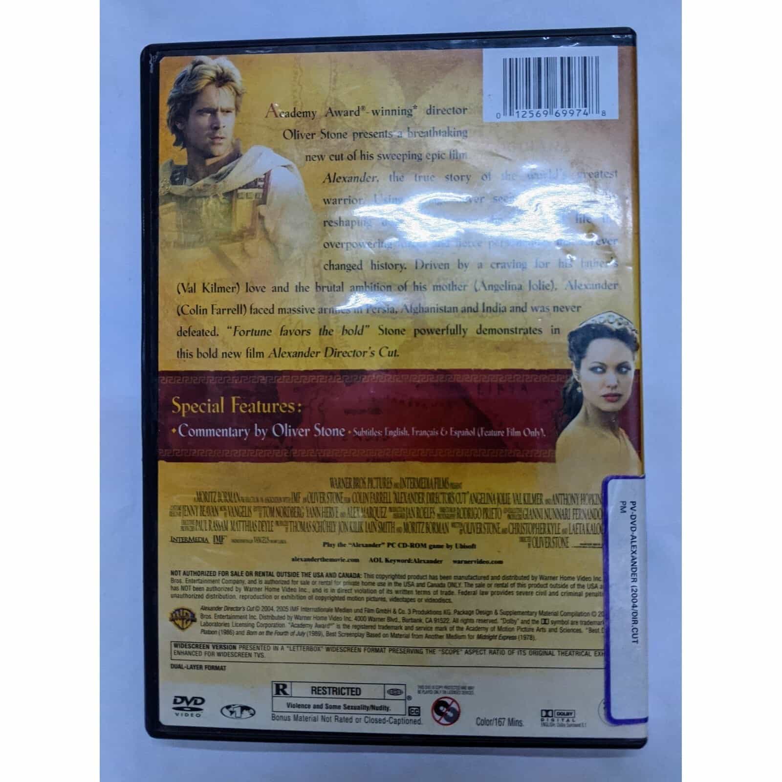 This is also a widescreen edition. This set is the movie disc only. The original bonus DVD which had documentaries on it, is missing. Oliver Stone’s director’s cut of Alexander is unusual in that it’s actually shorter than the theatrical version (167 minutes to 175). That’s apparent early, as 15 minutes of footage–largely political manipulations and such–have been removed from the first hour of the movie, and it’s an improvement to get to the action more quickly. Two of the major scenes aren’t gone, however, but moved to later in the movie as flashbacks. The other notable change is a reduction of the homosexuality subtext.