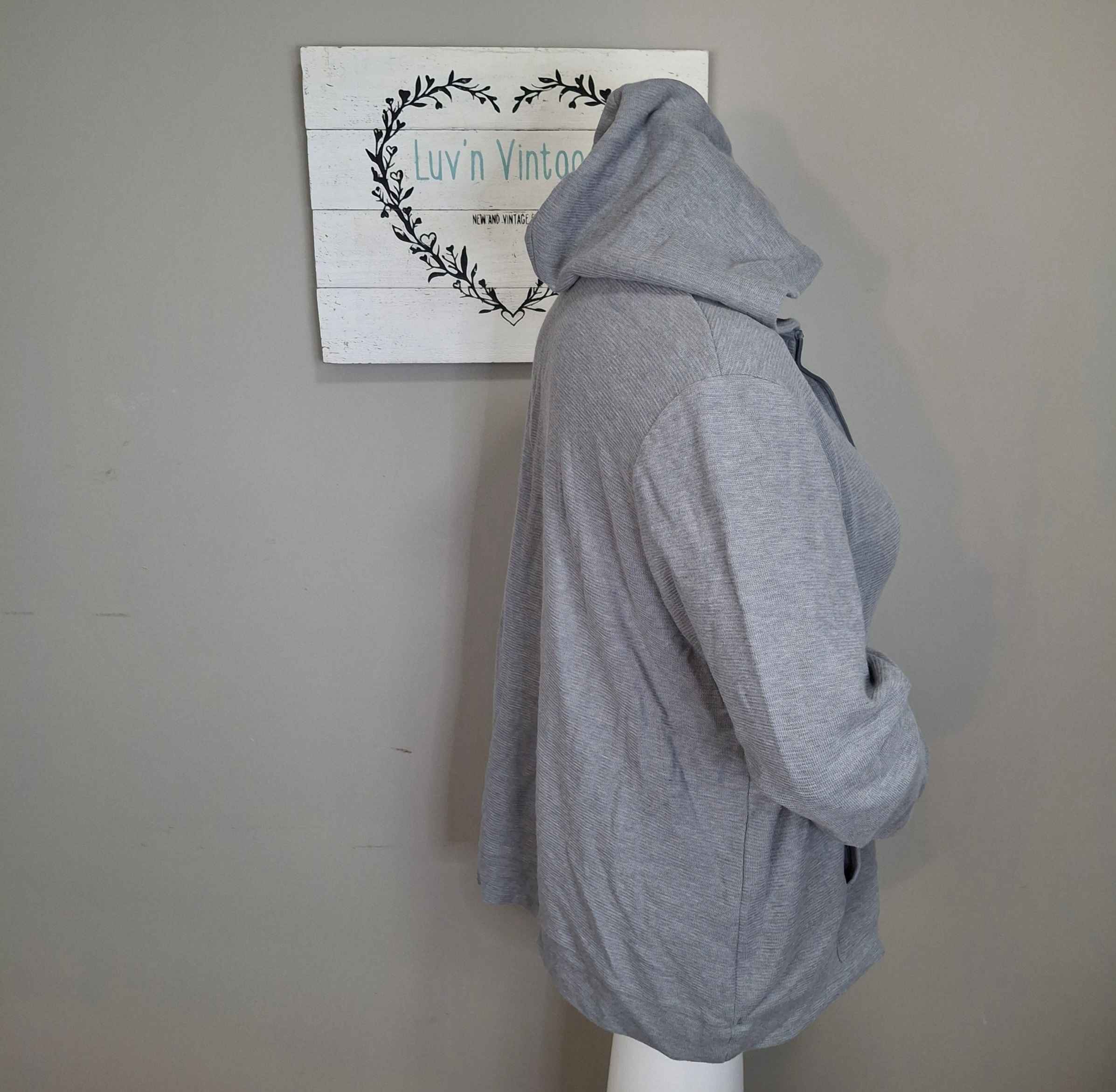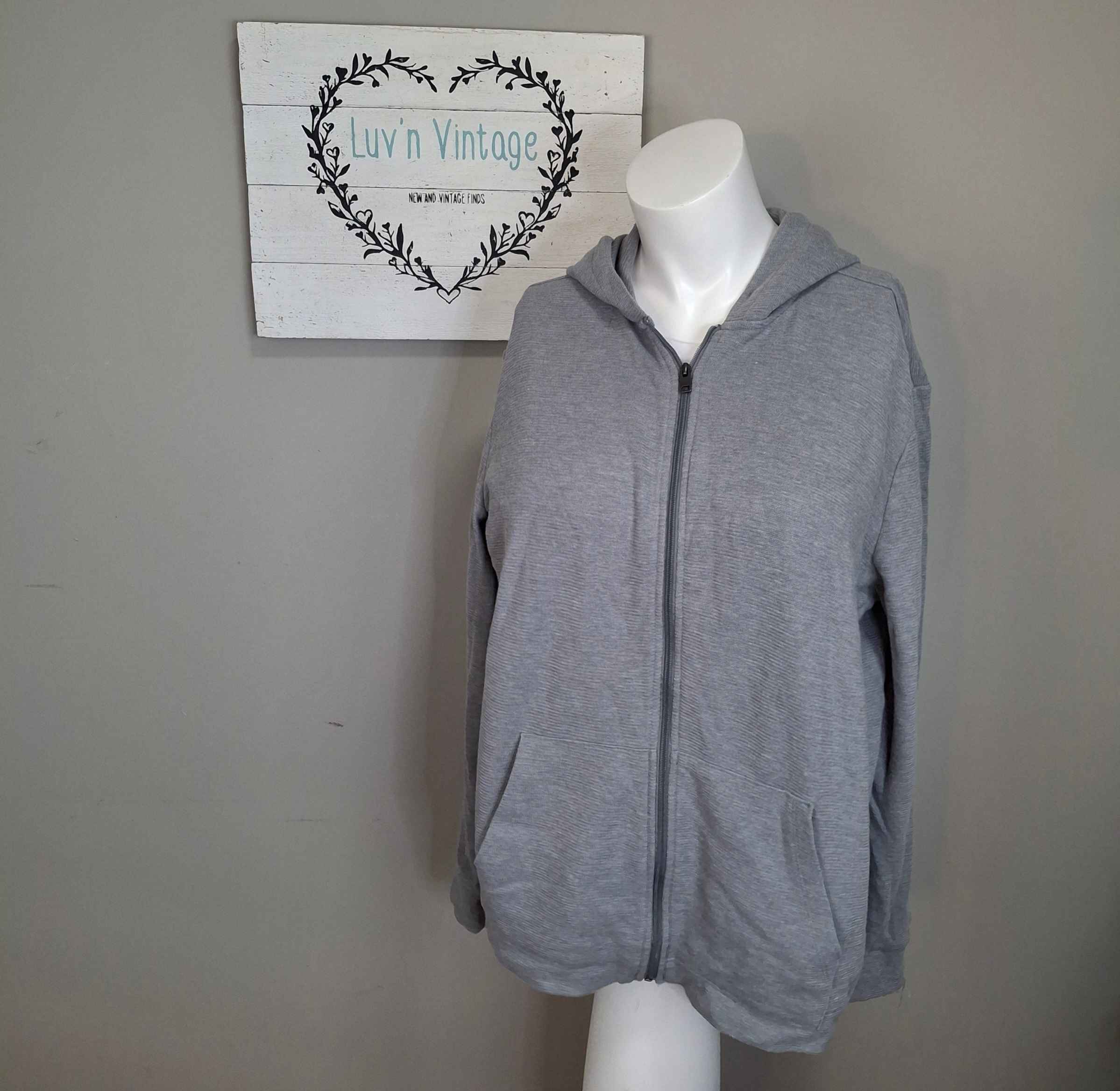 Keywords: APT 9, hoodie, zip up, jacket, textured, ribbed, gray, plus size, XXL, casual, loungewear, layering, athleisure