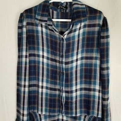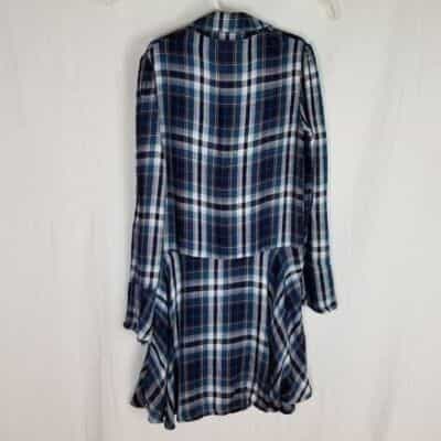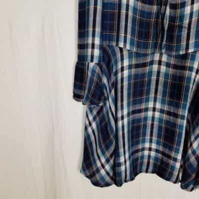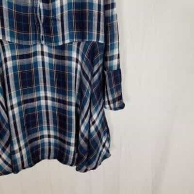 Cute little blue plaid dress with a partial button front and flouncy sleeves! Wear this with tights and flats or leggings and boots for an adorable dressy or casual look!