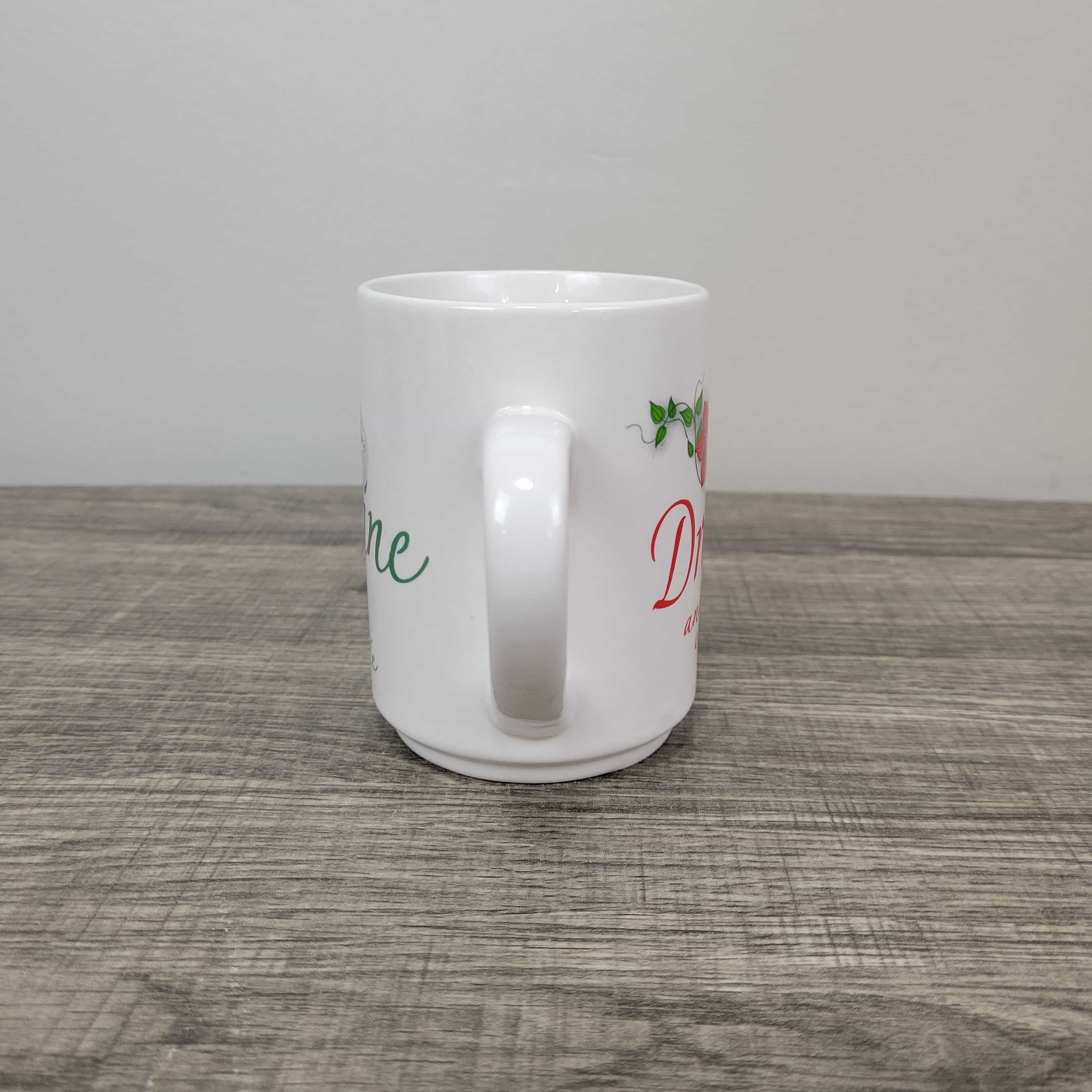Keywords: coffee mug, tea cup, ceramic mug, Bay Island Inc, imagine, dream, floral mug, inspirational mug, white mug, kitchen decor, gift idea, decorative