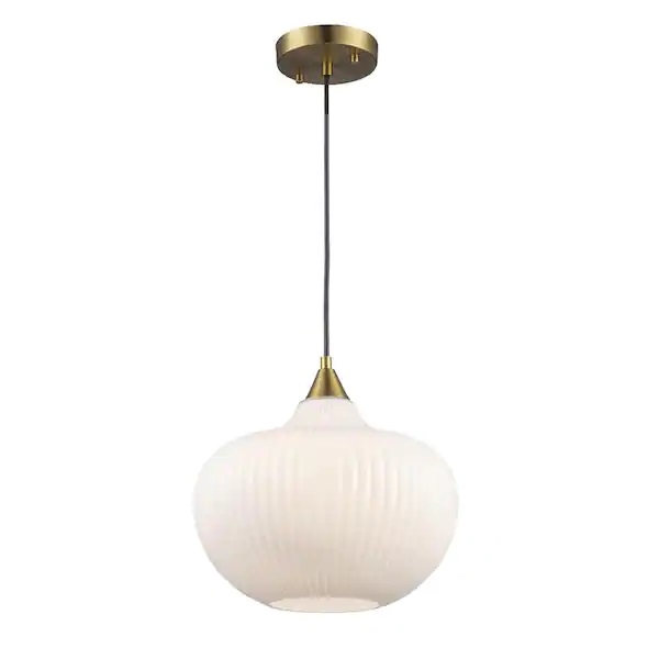 Bel Air Lighting 16181 AG Aristo 1-Light Antique Gold Hanging Kitchen Pendant Light with Frosted Glass Shade