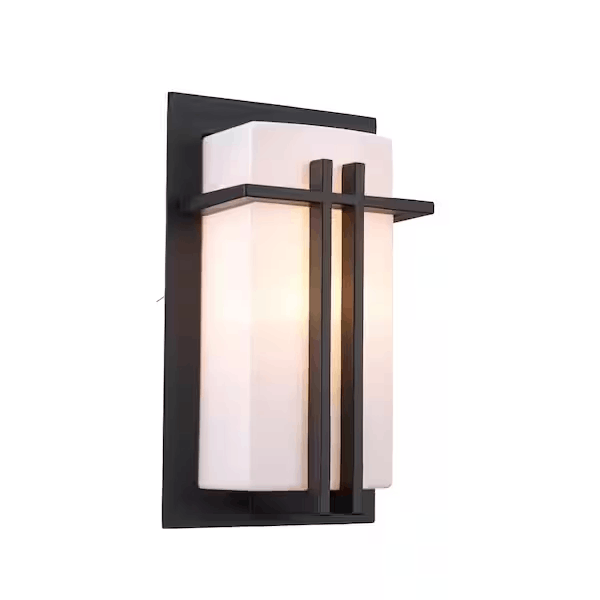 Bel Air Lighting 40280 BK Doheny 1-Light Black Modern Outdoor Wall Light Fixture with Opal Acrylic Shade