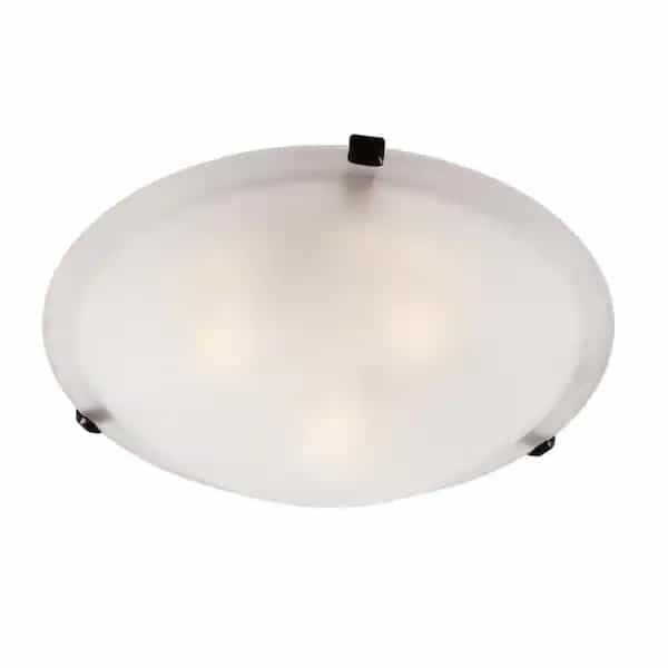 The Cullen Collection from Bel Air exhibits low profile ceiling lights, designed to fit in any room of the home. The hallmark of the Cullen collection is minimalism, highlighted by the simple frosted glass dish-style shades and metal support clips to hold the glass in place. The 15 inch round flush mount is the medium sized piece in the collection, extending just five inches from the ceiling and offering ample illumination from the three-light design. The bulbs are hidden inside the wide shade, and are easily accessible by pulling back the three spring-loaded metal support clips and removing the glass. The rubbed oil bronze finish on the clips will coordinate easily with existing decor styles and other fixtures throughout the home. The Cullen family is suitable for use in damp areas, and can be mounted in bathrooms, living rooms, kitchens, or anywhere additional light is needed.