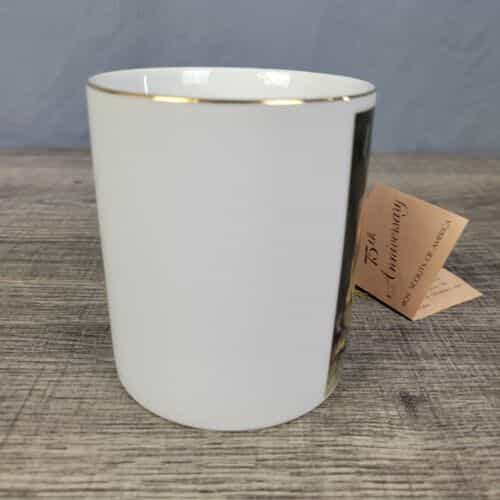 Vintage (but new with original tag) Boy Scouts mug celebrating their 75th anniversary featuring a reproduction of an original oil painting by Joseph Csatari!