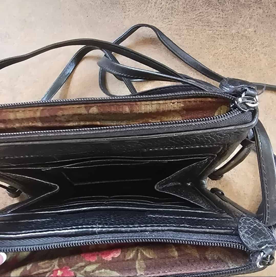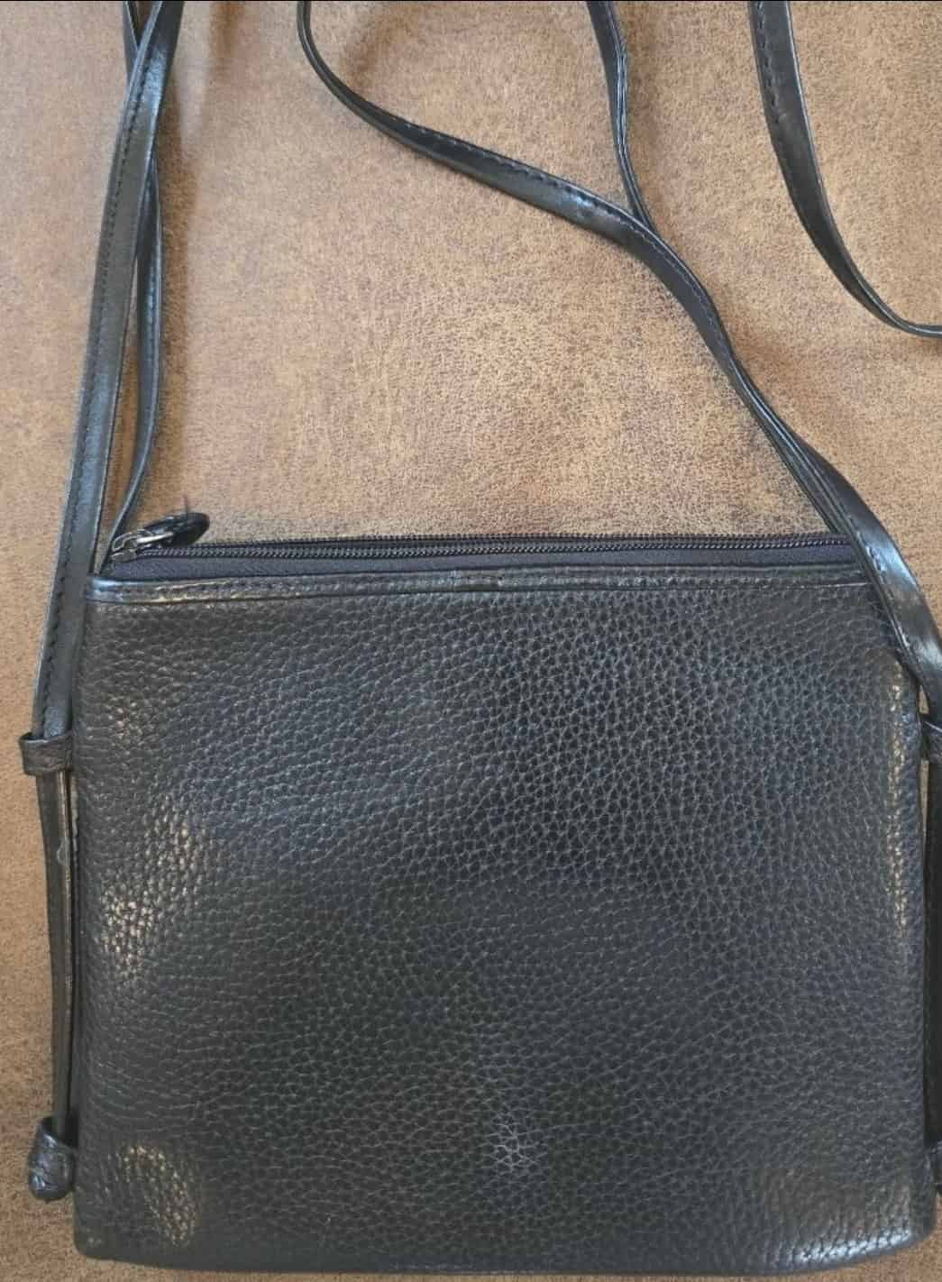 Brighton crossbody bag, black textured purse, double zip handbag, small organizer bag, Brighton leather crossbody