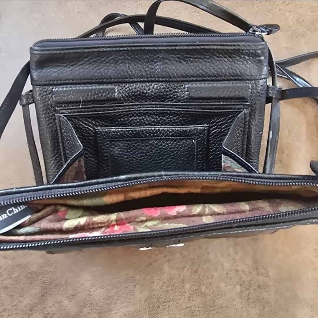 Brighton Double Sized Small Crossbody Bag Black Textured Leather Multicompartment