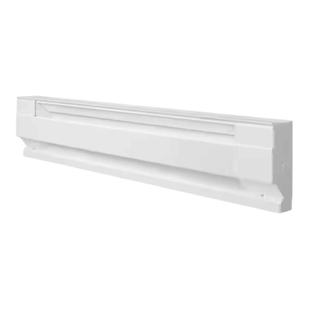 This electric baseboard heater offers a simple and economical way to add quiet convection heat wherever it is needed in the home. The white 36-inch heater is an industry-standard size, making it suitable for replacement projects or new construction. It is designed for easy installation with pre-punched mounting marks and wiring access at both ends. A thermostat is required for operation and is sold separately. Be sure to select the correct heater size based on the area you want to heat.
