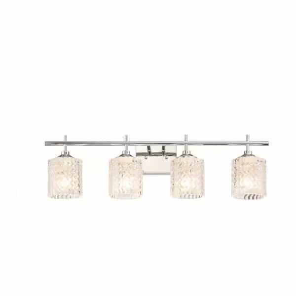 This 29 in. 4-light Chrome Class Shade Dimmable Vanity Light with Ctystal Accents has a soft, non-blinding light that will give you a warm and inviting atmosphere. Placing it in your home will instantly enhance the ambiance of your home. It is made of metal, which is weather resistant and the lamp has a long service life. The design of this lamp is simple and generous and it will also look friendly and warm. It will also look classy when placed in your home. If you are looking for such a chandelier. Just don’t hesitate to buy it.