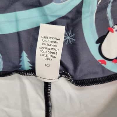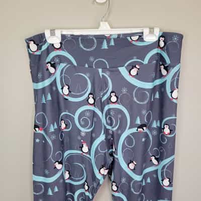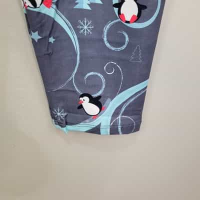 Soft and comfy pair of gray leggings made of polyester and spandex with a fun penguin print and a wide waistband!
