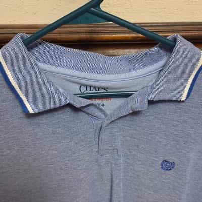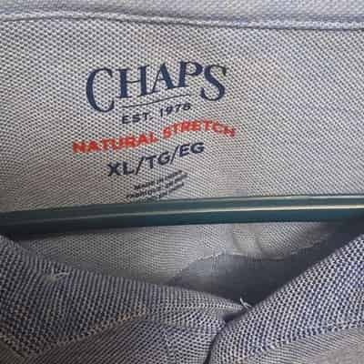 Chaps XL Blue Polo Shirt Natural Stretch Collared Button Short Sleeve Logo
