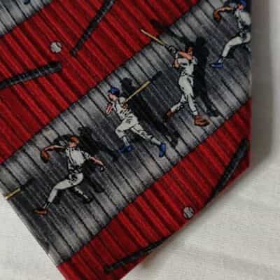 Super cute dark red and gray tie with baseball players all over it! Perfect for your little sports fan!