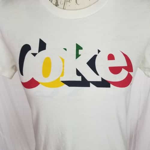 Cool ivory t-shirt with a colorful Coca-Cola logo!