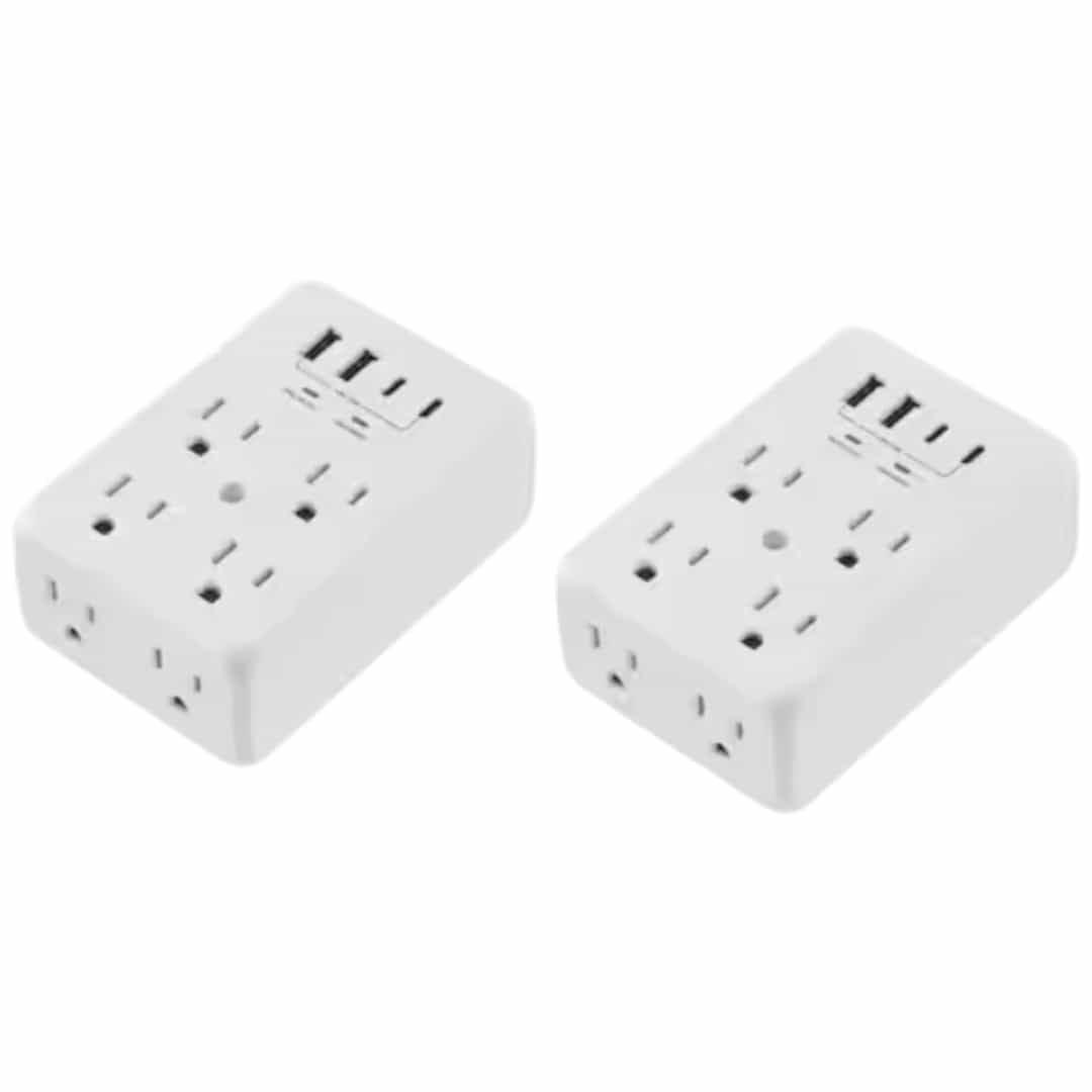This power strip features 6 surge-protected outlets and 4 USB ports, providing reliable protection from power surges and spikes. Its stabilizing rod and screw design allow for secure wall mounting, preventing accidental falls. The widely spaced outlets accommodate up to 6 bulky plugs simultaneously without interference.