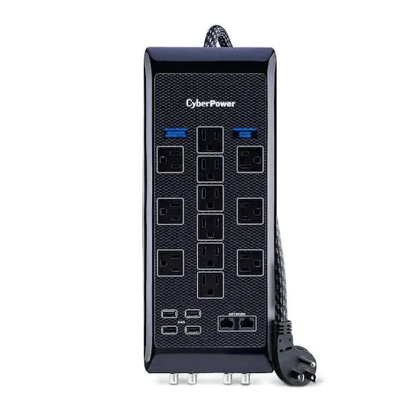 Premier Power Protection Surge Protector+USB strip Your home entertainment system, gaming gear and devices deserve 24/7 protection. Safeguard valuable electronics against voltage spikes and serious power events such as lightning-induced surges with advanced power protection. Loaded with features like fireproof and safe-fail technology, this surge protector guarantees your home and equipment stay safe. USB charging ports, network line protection, kink-resistant cord and a sleek design make it perfect for all your home entertainment needs.