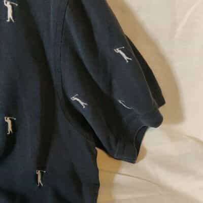 This nice cotton navy blue polo with embroidered golfers would make be a great addition to your golfing wardrobe!
