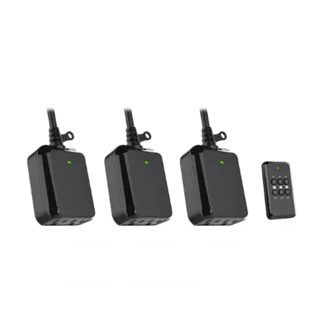 The Indoor/Outdoor Wireless Remote Control Kit allows you to control lights and appliances from up to 80 feet away. Ideal for holiday decorations, landscape lighting, and security applications, this remote control kit includes 3 receivers, offering convenience and flexibility for various uses.