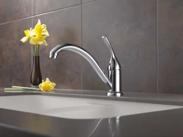 Upgrade your kitchen with the Delta 101-DST Classic Single Handle Kitchen Faucet in Chrome. Its timeless design, functionality, and durable construction make it an excellent choice for any kitchen upgrade. Elevate your daily kitchen routine and enjoy the added convenience and style that Delta is known for. Upgrade today and indulge in the extraordinary.