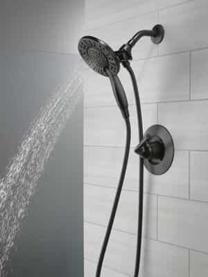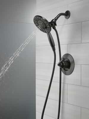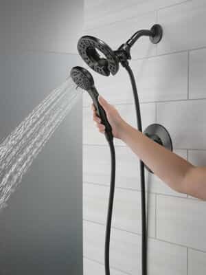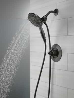 The fluid lines of the Arvo™ Bath Collection bring a delicate, serene look to the bath. The Delta® In2ition® Two-in-One Shower features a detachable hand shower which can be used separately from or simultaneously with the shower head. This integrated dual-functionality gives you maximum flexibility without sacrificing warmth, as you can choose to have water streaming from the shower head only, the hand shower only or both the shower head and hand shower at once. While other products may gather unsightly mineral build-up over time, Delta soft rubber Touch-Clean® spray holes allow any mineral residue to simply be wiped away for an instantly refreshed look – with no need for soaking or the aid of chemical cleaners. The pause setting gives you ample space for shaving, lathering and other shower tasks, then easily restarts the water with the temperature where you left off. This spray setting helps you conserve water, so you can worry less about depleting your supply of hot water – and you help the environment too. Delta WaterSense labeled faucets, showers and toilets use at least 20% less water than the industry standard-saving you money without compromising performance.