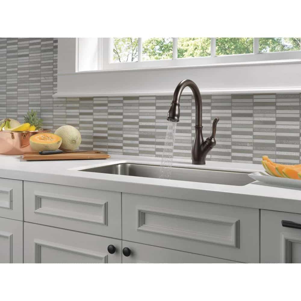Upgrade your kitchen with the DELTA 9178T-RB-DST Leland Single-Handle Pull-Down Sprayer Kitchen Faucet in Venetian Bronze. This faucet seamlessly blends style with innovation, providing convenience and efficiency in your kitchen.