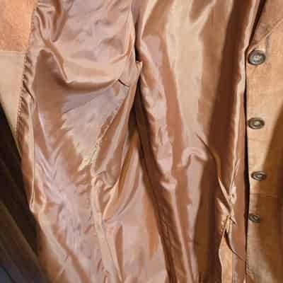 Dennis Basso Brown Leather Overcoat XL Men’s Button Closure Lined Pockets