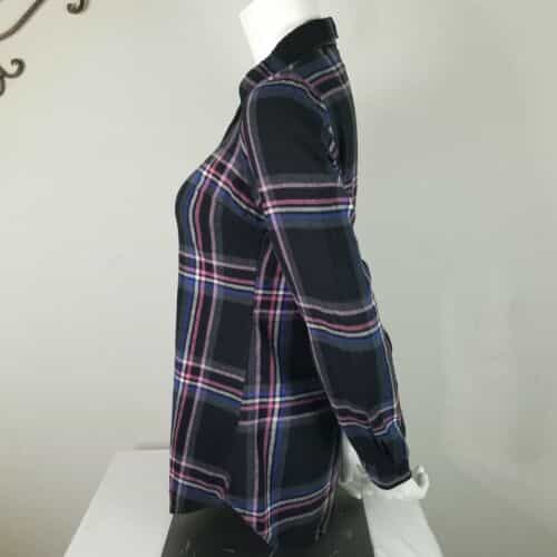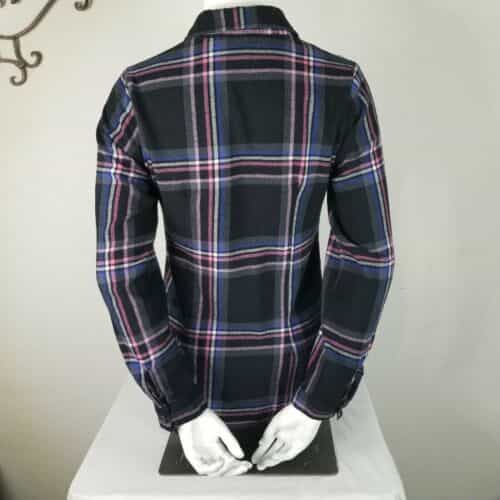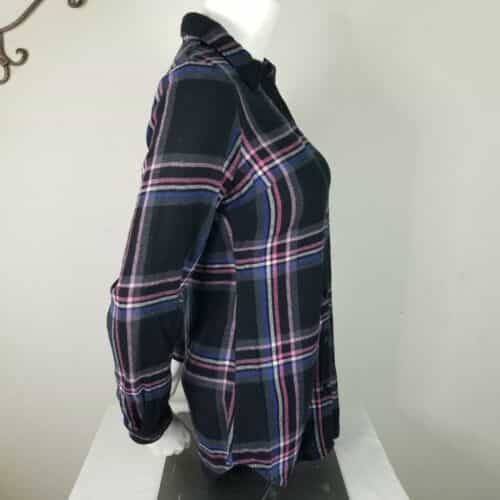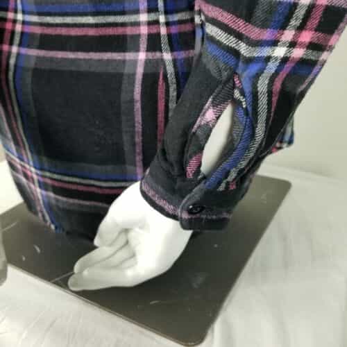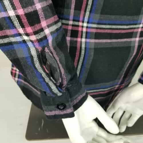 Black, gray, blue, pink and white plaid button front shirt! Soft and snuggly; perfect for cool weather!