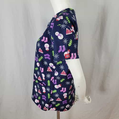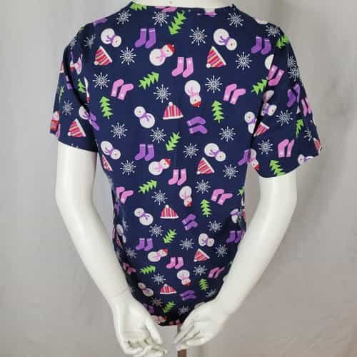 Fun holiday themed snowman scrub top with 2 large front pockets made by the well-known Dickies company! A fun top to put a smile on the faces of all your patients!