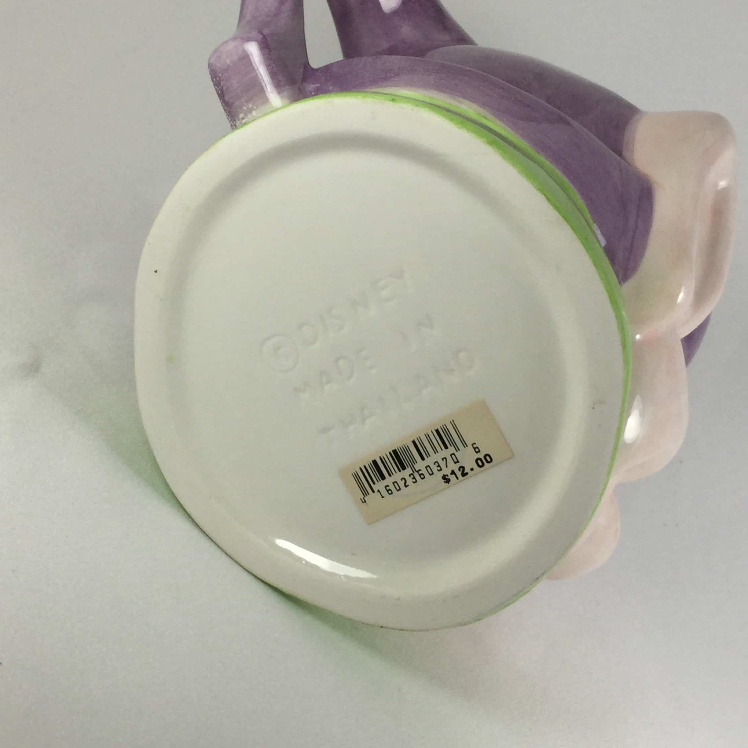 Disney Dopey character head mug, ceramic, with original tags. Hand painted. Dopey in his classic green tunic and purple cap.
