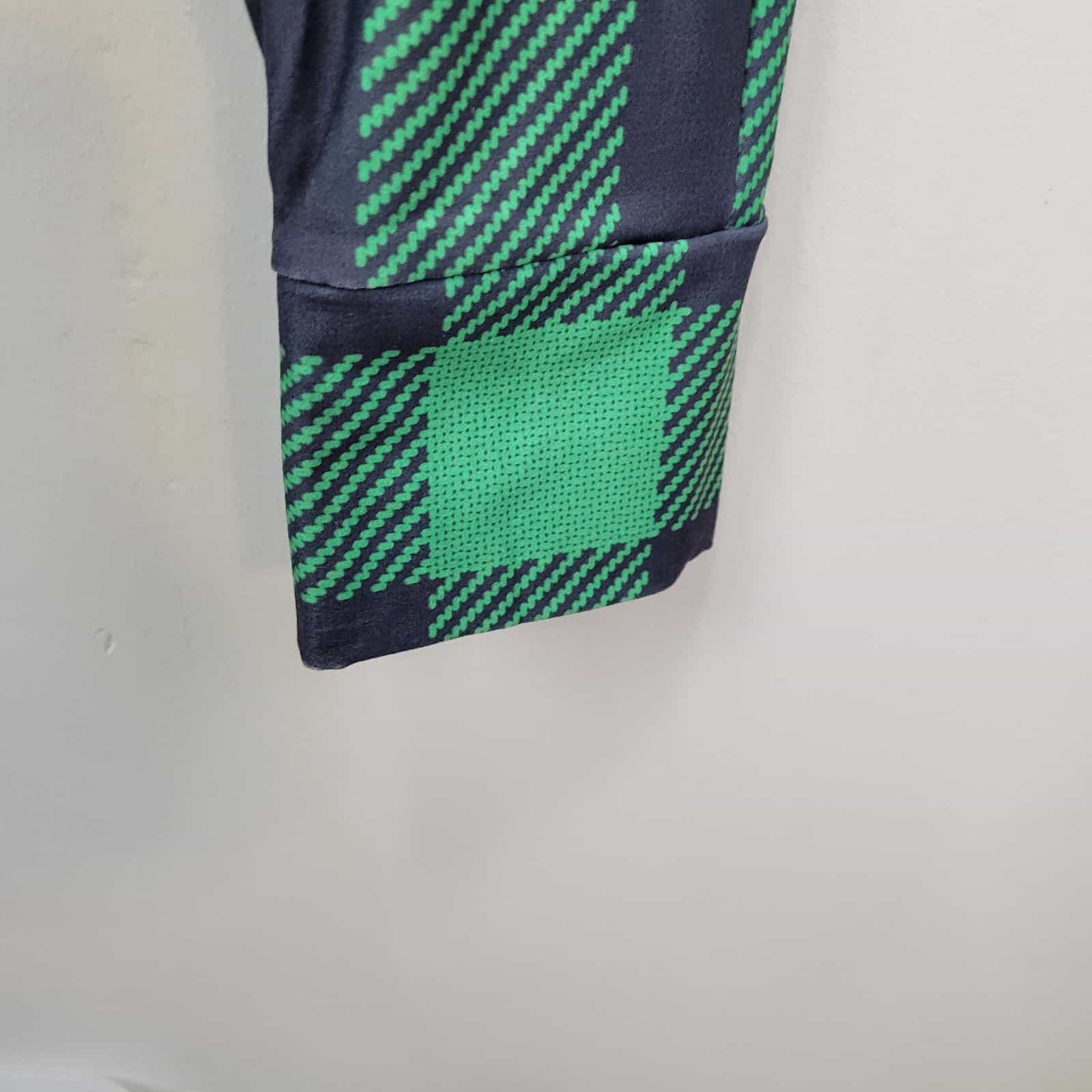 Soft and comfy pair of green and black plaid joggers made of polyester and spandex with a wide elastic drawstring waistband and side pockets!
