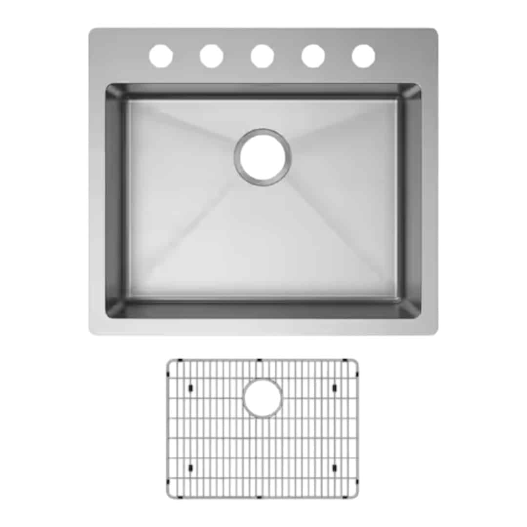 Elkay ECTSRAD25226TBG5 Crosstown 25 in. Drop-In/Undermount Single Bowl 18 G Polished Satin Stainless Steel Kitchen ADA Sink Kit w/ Accessories