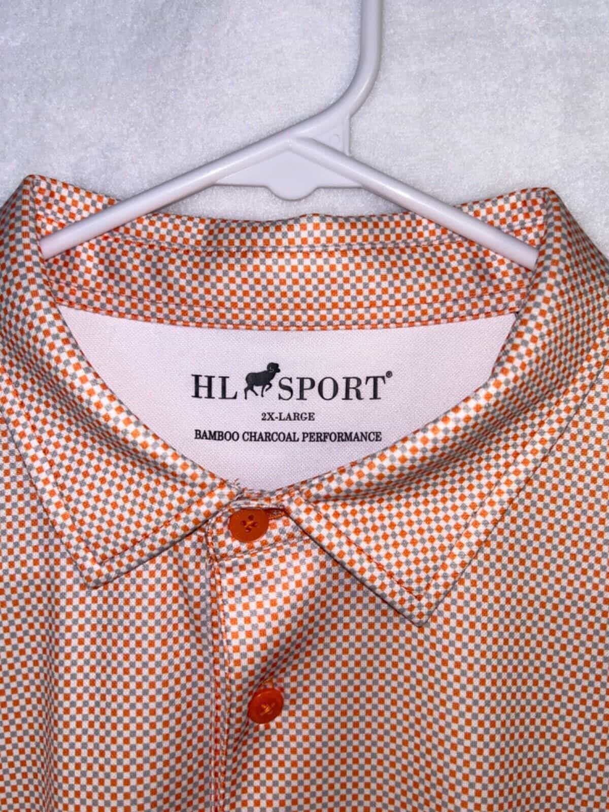 Elevate your wardrobe with this stylish and versatile HL Sport Polo Shirt. Made from a lightweight and breathable blended fabric, this shirt is perfect for all seasons and occasions, whether it’s casual, workwear, or activewear. The geometric pattern in white with orange and gray squares adds a touch of sophistication and elegance, while the spread collar and button closure give it a classic look.