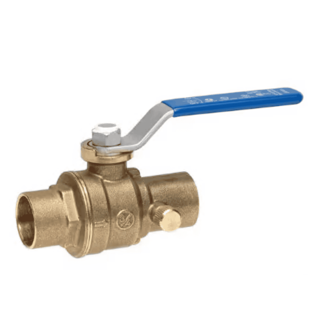This lead-free ball valve with drain is made from heavy-duty forged brass and features a quarter-turn lever handle with solder connections on both ends. Designed for residential and commercial applications, it can be used with water, air, steam, oil, or gas. The full-port design helps provide maximum flow with minimal pressure drop, and the brass construction offers excellent corrosion resistance for versatile use.