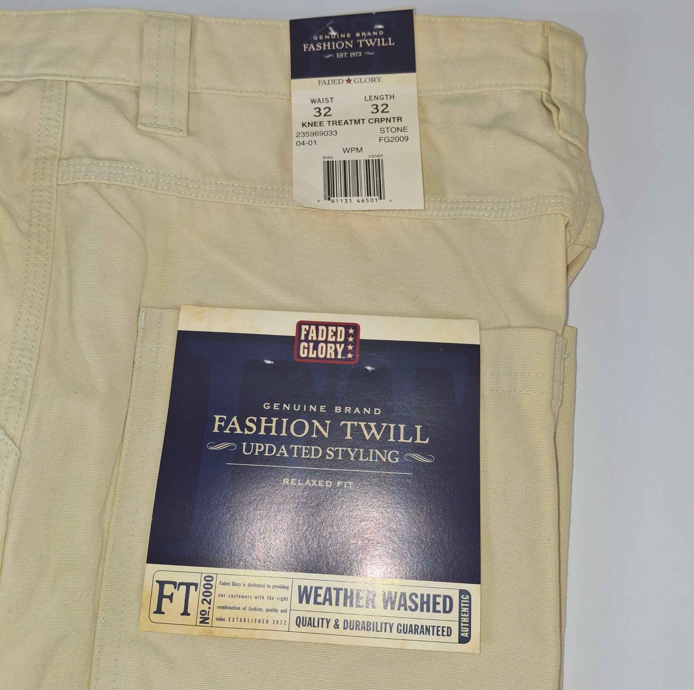 Faded Glory Mens Relaxed Fit Carpenter Pant Stone Fashion Twill 32×32 FG2009 NWT