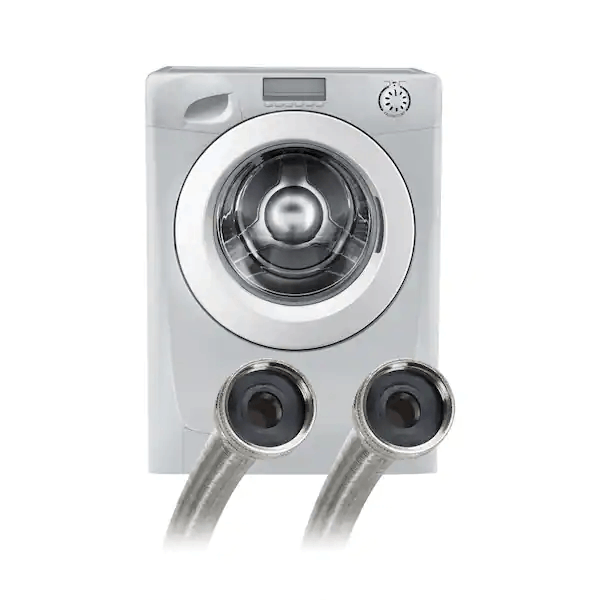 This Fluidmaster Universal 5 ft. High Efficiency Washing Machine 2-Pack is the top choice to upgrade your existing washing machine supply line. The heavy duty nickel plated brass nuts are easy to grip, while the braided stainless steel lines remain flexible resisting creases and kinks. A universal design for both traditional and high efficiency (HE) washing machines. The larger inner diameter creates 45% faster flow rates than traditional connectors. This optimizes water fill and energy use for your washing machine. Replace your outdated or leaking connector with a true high efficiency replacement. Featuring a 3/4 in. x 3/4 in. Hose Thread connection with a 1/2 in. inner diameter. The Fluidmaster Universal High Efficiency Washing Machine Hose 2-Pack is lead free and meets all code requirements.