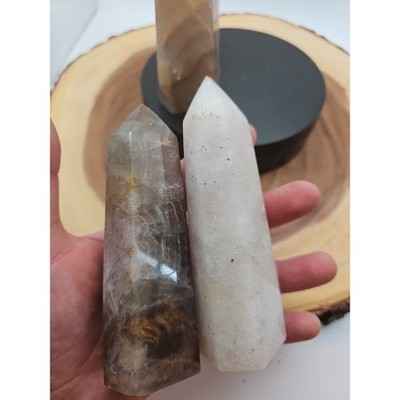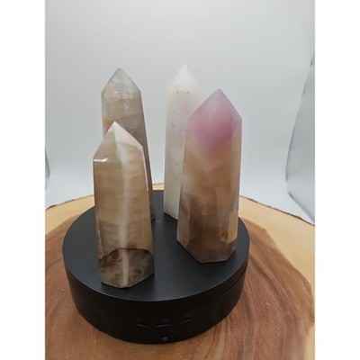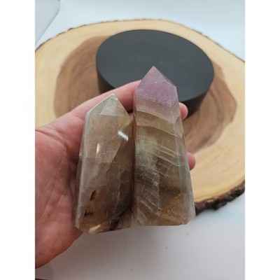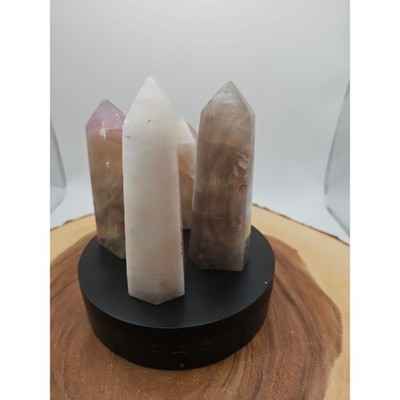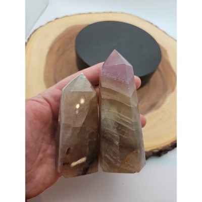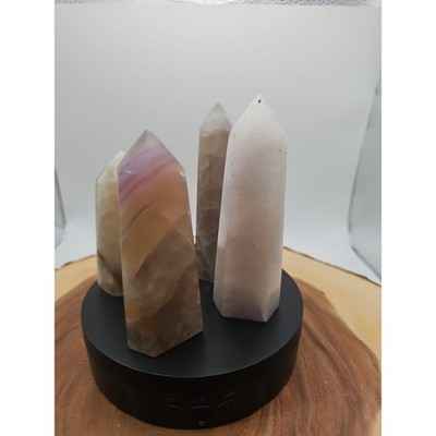 This set of 4 fluorite crystals weighs 2.52lbs and is sourced from Madagascar. Each crystal is shaped like a generator, making them unique and eye-catching additions to any crystal or mineral collection. With their striking appearance and origin from a specific country, these fluorite crystals offer a special and rare find for collectors and enthusiasts alike.