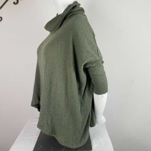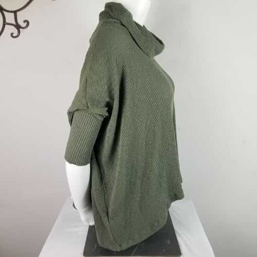 Oversized sweater with a pretty cowl neck and a hip open back! Perfect sweater to pair with capris and sneakers for a casual look or with jeans and flats to dress it up a little!