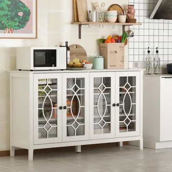 FUFU&GAGA KF330001-01 Modern White Wood Buffet Sideboard With Storage Cabinet, Glass Doors, and Adjustable Shelves for Kitchen Dining Room