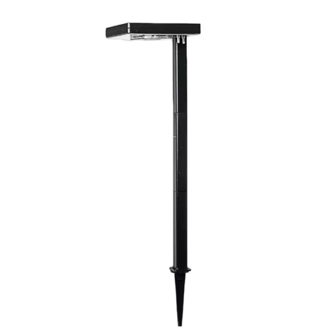 The Gama Sonic Contemporary Square Solar Pathway Light delivers the quality and brightness of traditional low-voltage landscape lighting without the need for wiring. Producing 80 lumens, it features a durable, weather-resistant cast aluminum frame designed for year-round use. Its modern geometric design in a sleek black finish complements both residential and commercial spaces. This versatile fixture includes three ground stake mounting options—side, center, and corner—so you can tailor the installation to your needs. It offers warm white or bright white color temperature settings, along with high and low brightness modes for customized ambiance and runtime. Installation is quick and easy: choose a sunny location, assemble the light, and stake it into the ground.