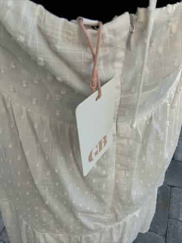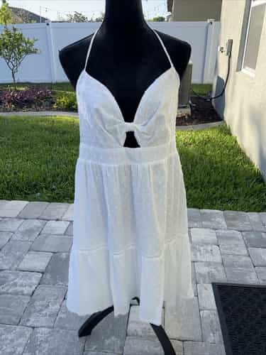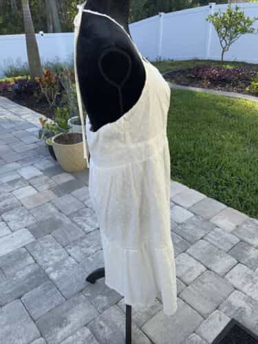 Beautiful beachy fun cute dress. I bought several of these with thoughts of beach photos in mind, for myself, my daughter and friend. They were marked down when purchased from Dillards. Can not return them.